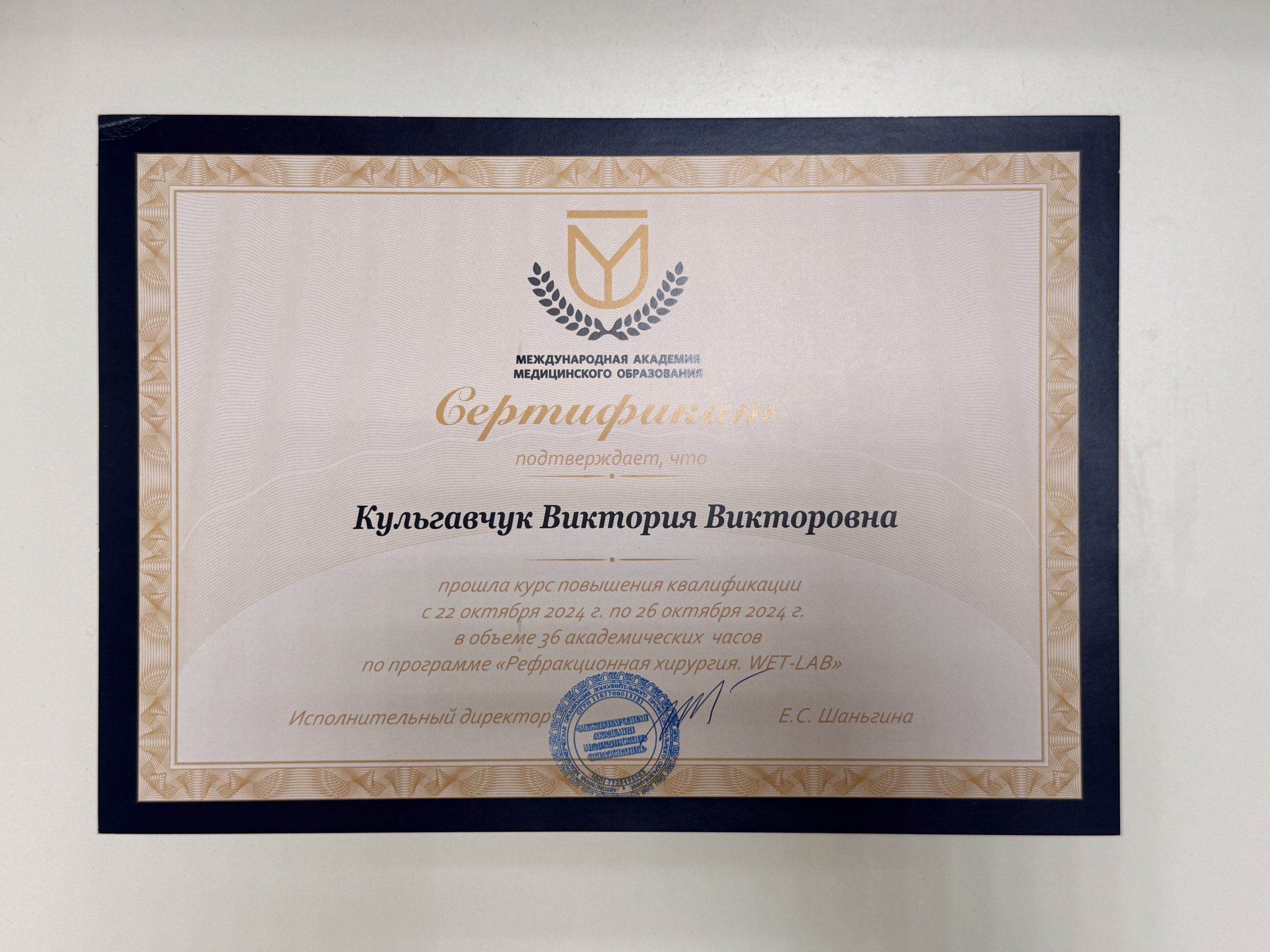 2024 — Повышение квалификации «Рефракционная хирургия. WET-LAB», г. Москва;