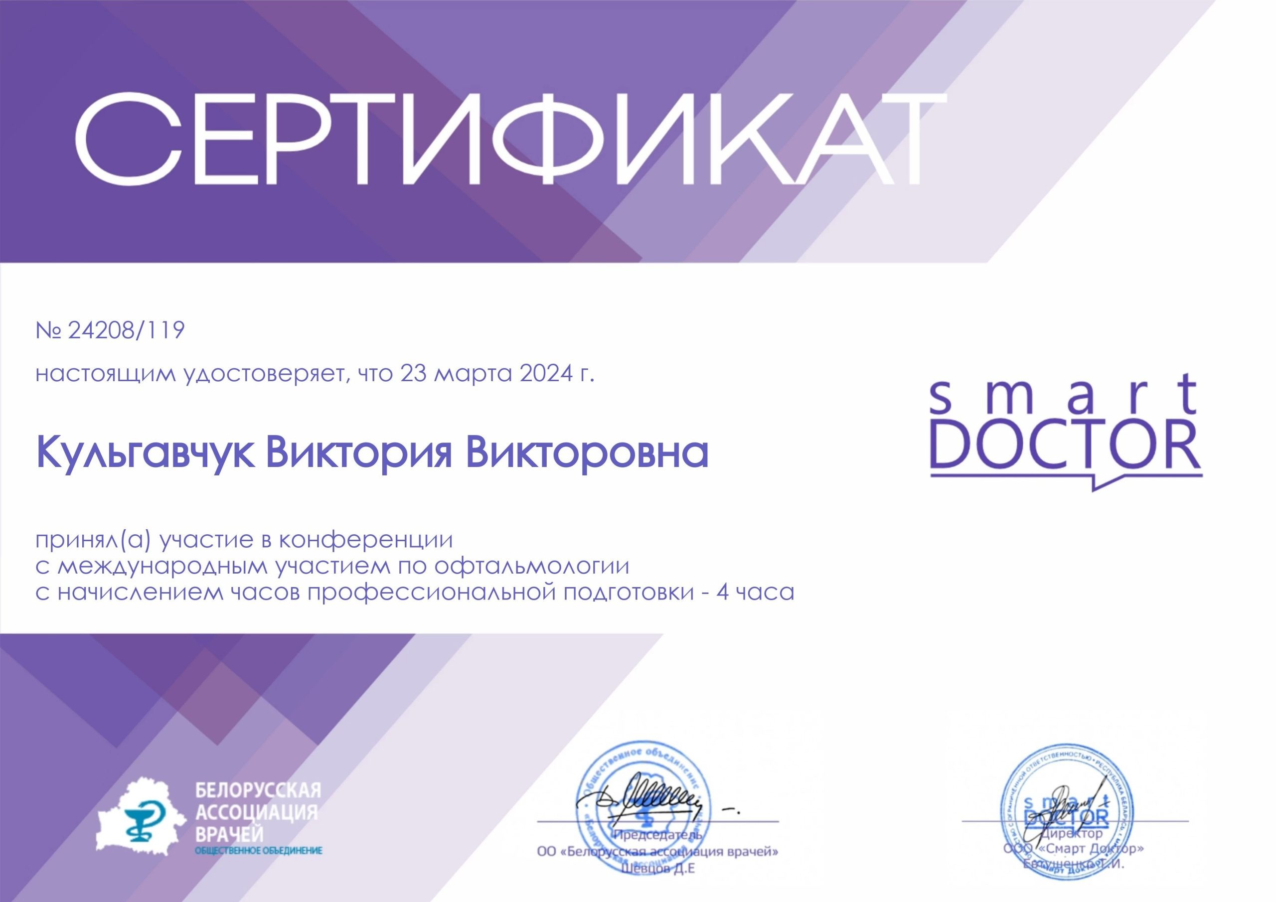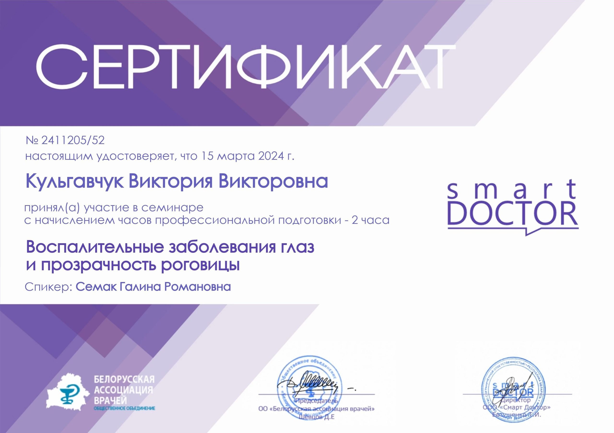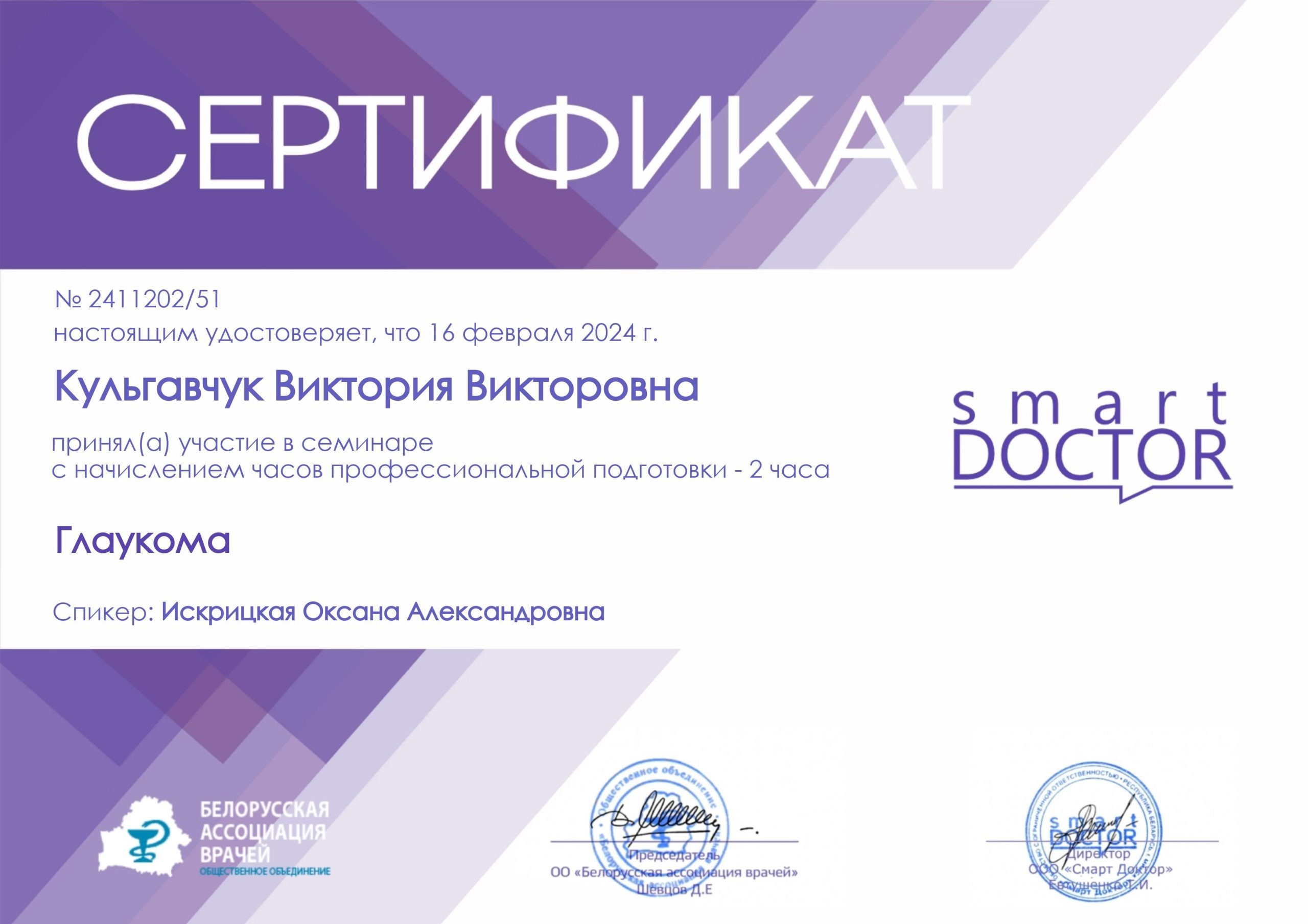 2024 — Курс «Стационарная офтальмология»;