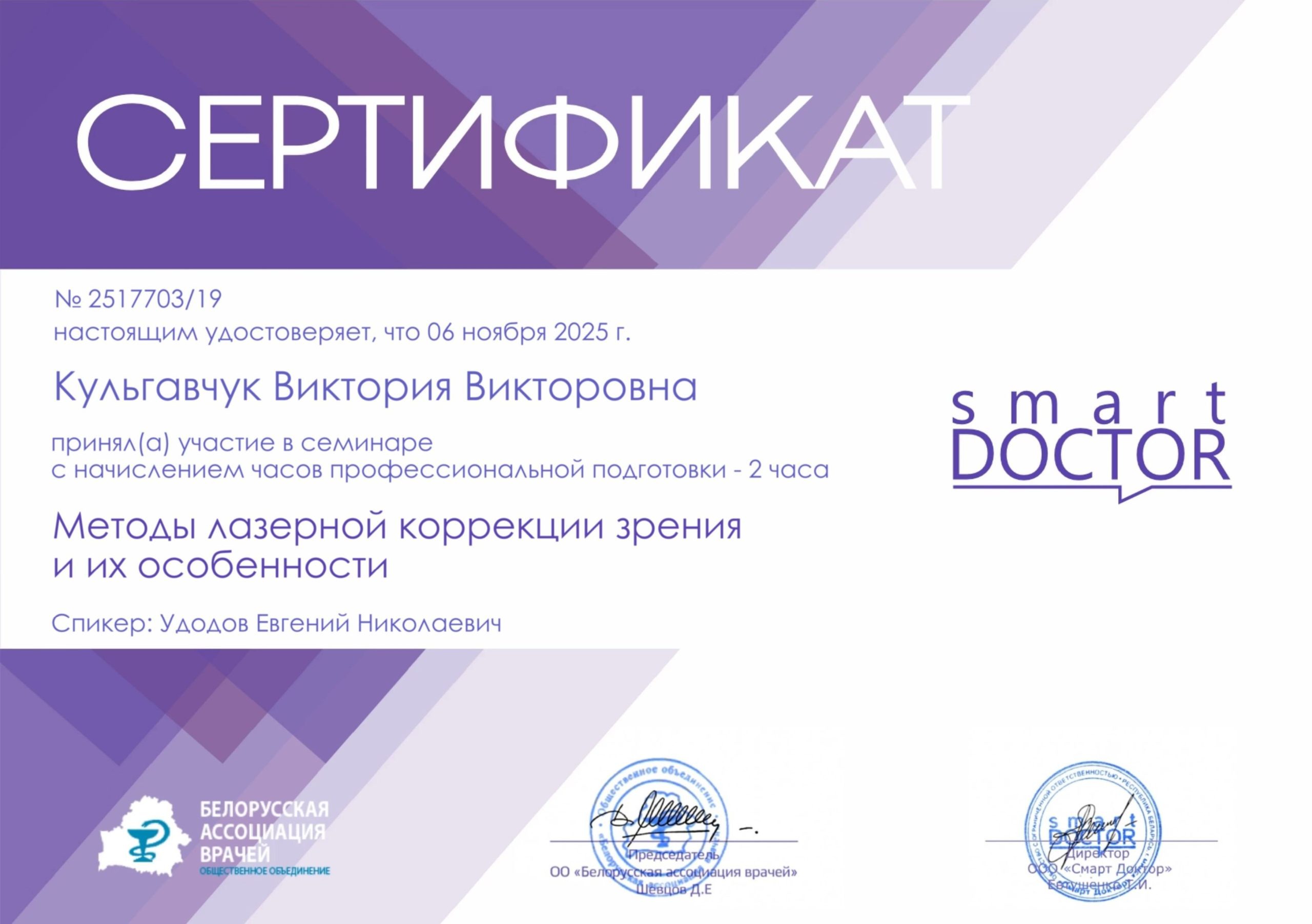 2025 — Курс «Лазерная коррекция зрения. Базовый курс»;